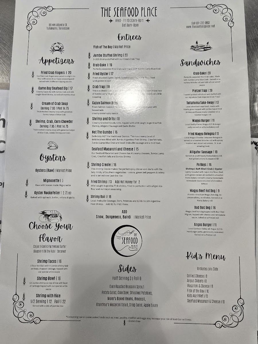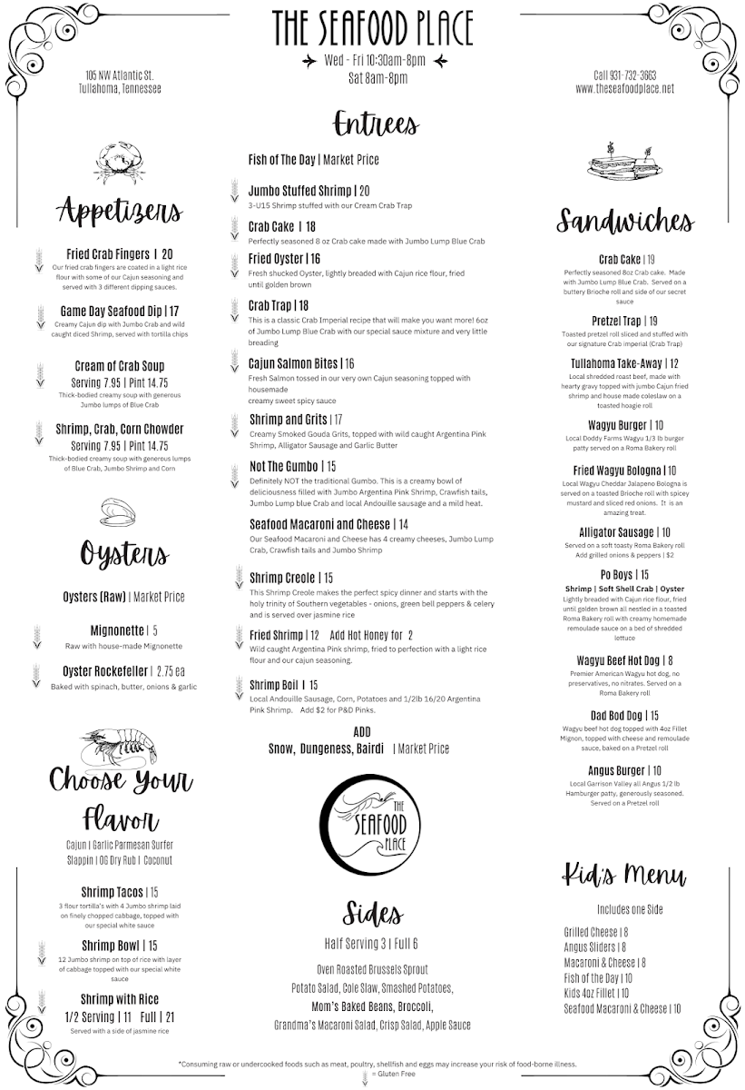 If you’re curious about what’s cooking at The Seafood Place Menu, get ready for a lineup that feels both comforting and a little indulgent. Tucked away at 105 NW Atlantic St in Tullahoma, this spot lays out a spread that seafood fans will appreciate right away. From golden, crispy fried shrimp and catfish baskets to buttery crab legs and perfectly seasoned hush puppies, everything reads like it’s made to satisfy a serious craving.